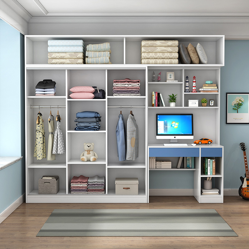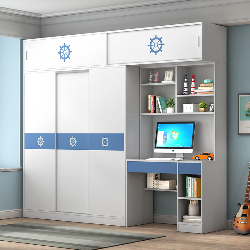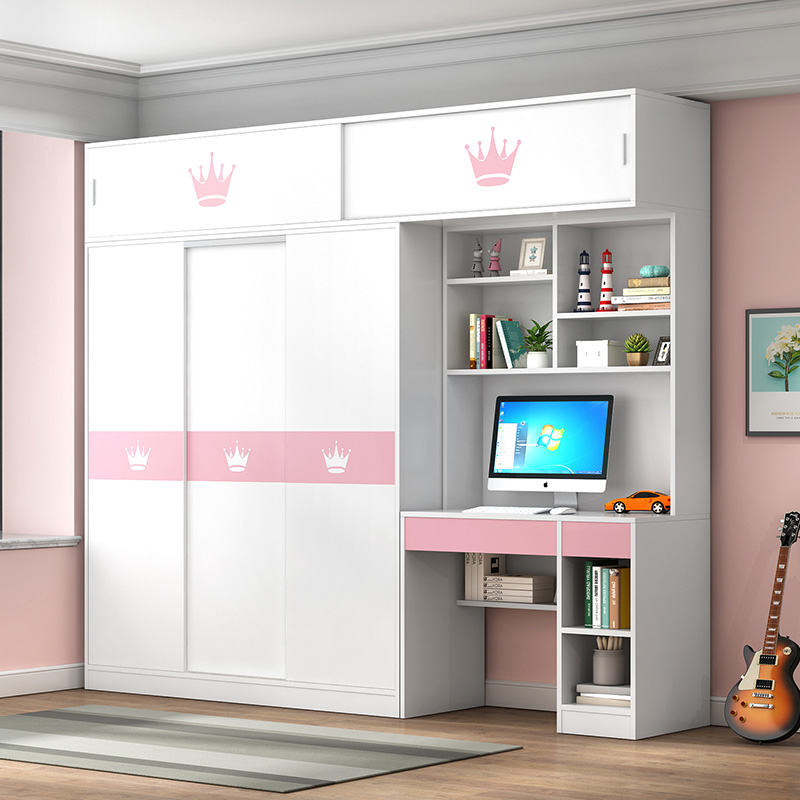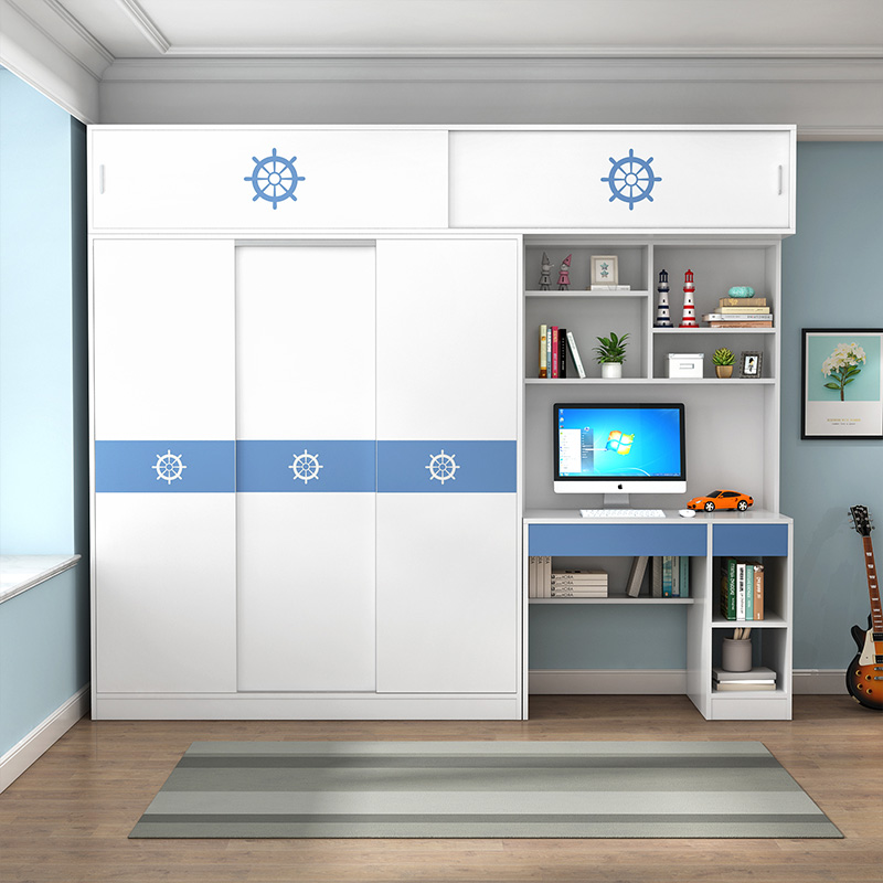 Solid wood wardrobe desk integrated with small family-shaped bedroom children's house furniture Ramen moving door multifunction