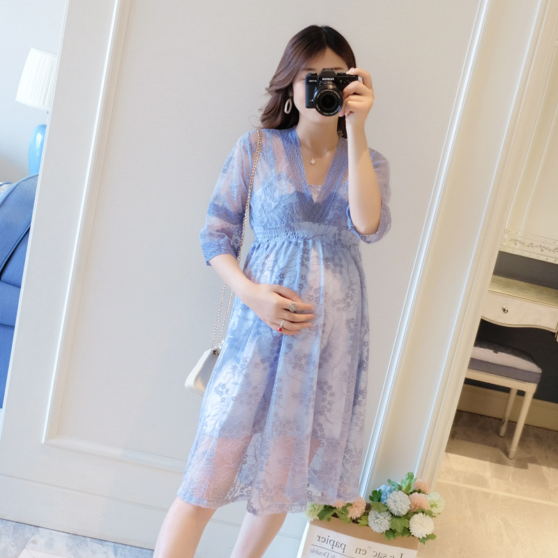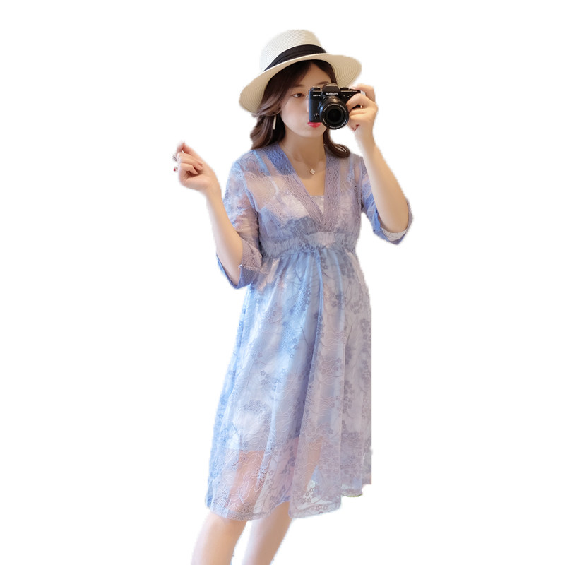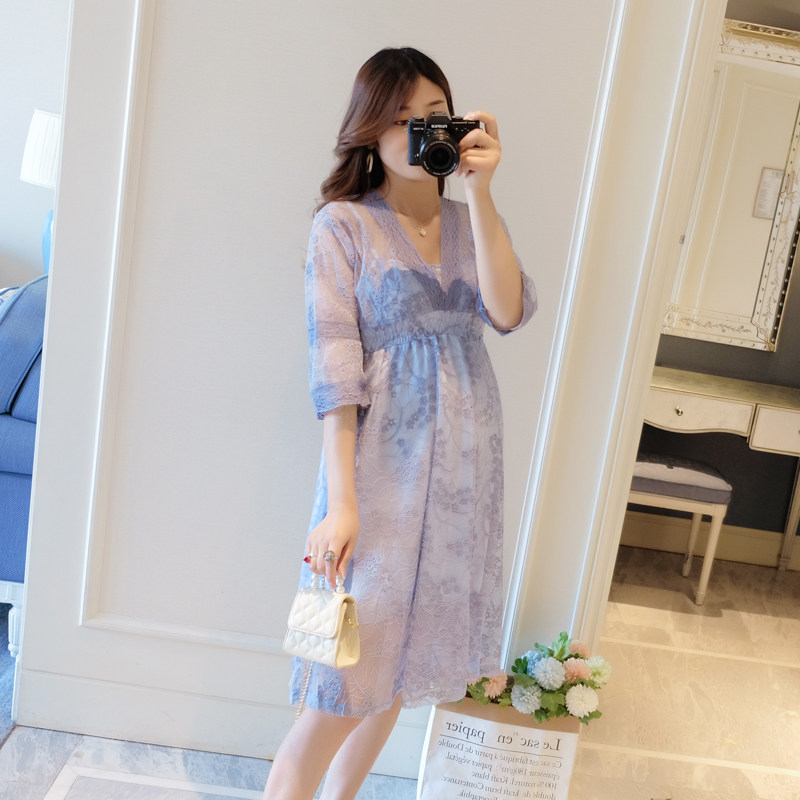 Pregnant women summer dress 2021 new fashion age-reducing net red suit summer small fresh pregnant woman skirt summer