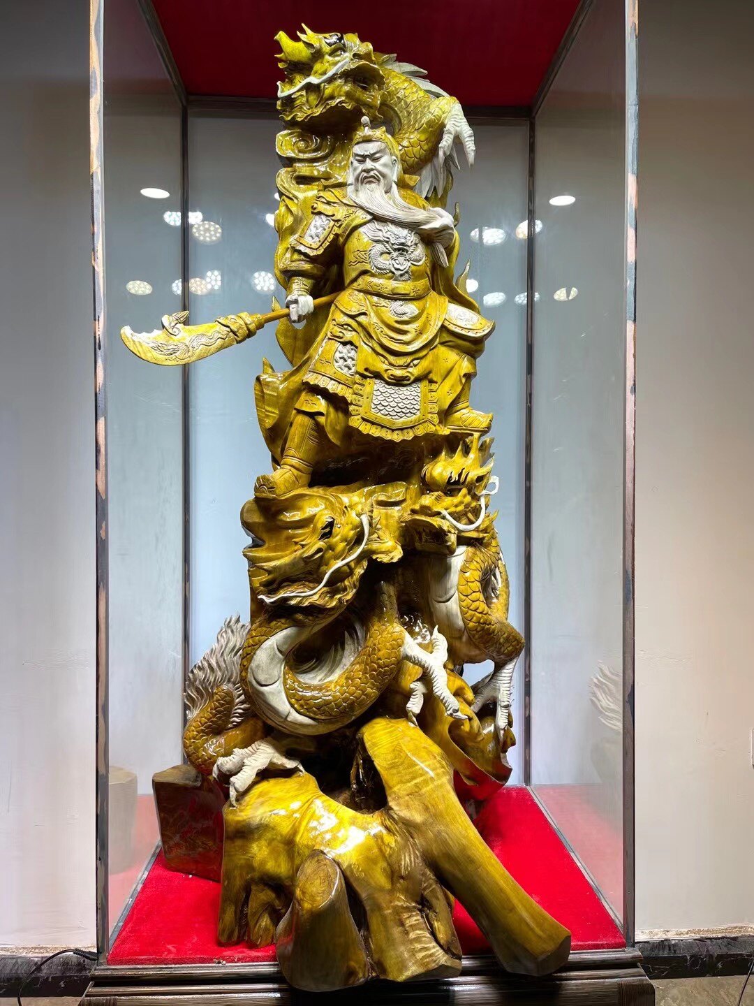 Hot Selling Gold Silk Nanmu Root Carving Pendulum Pieces Living Room Craft Gifts Swing Accessories Wood Carving Guan Gong Wu Chaise Spot Three Foot Tripod Spot