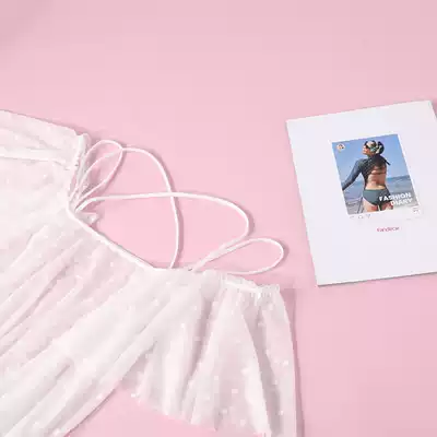 Fendia new retro wave spots beach clothes female cool suspenders lotus leaf sleeve mesh gauze beach clothes FH00004