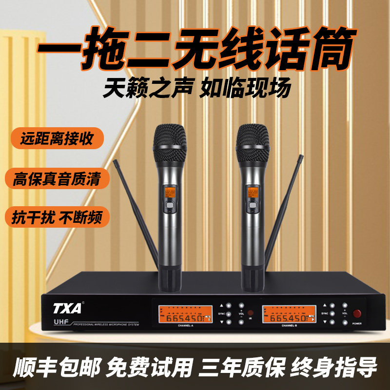 Wireless microphone 1 drag 2 conference lavalier microphone FM one drag four true diversity singing u segment professional microphone