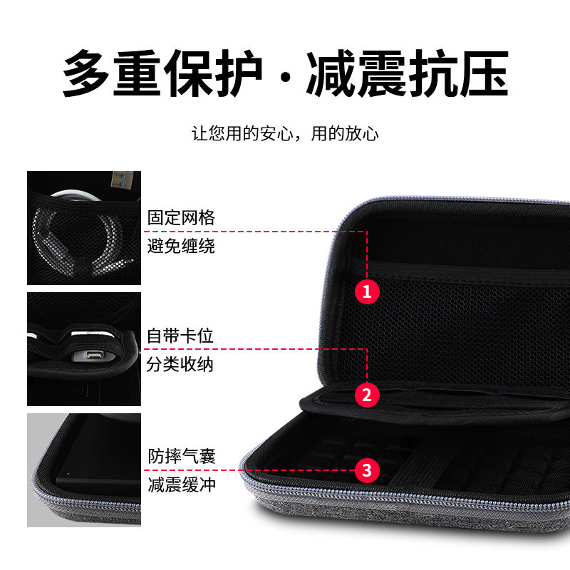 OLYSON Mobile Hddamp 2.5 inch solid state storage case is suitable for Seagate Samsung Toshiba WD Western Digital Headset Package Data Cable Big Charger Silicone U Disk Charging Treasure Digital Bag