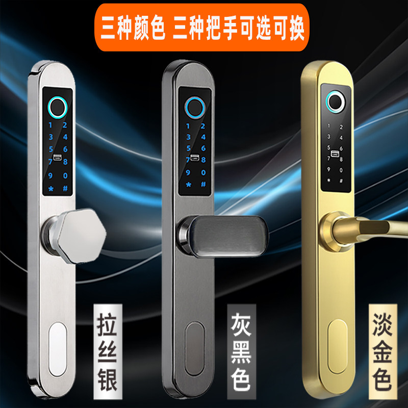 Heavy-duty pull door fingerprint lock aluminum alloy moves door KFC door break bridge aluminum door sliding door smart lock lock