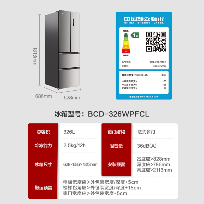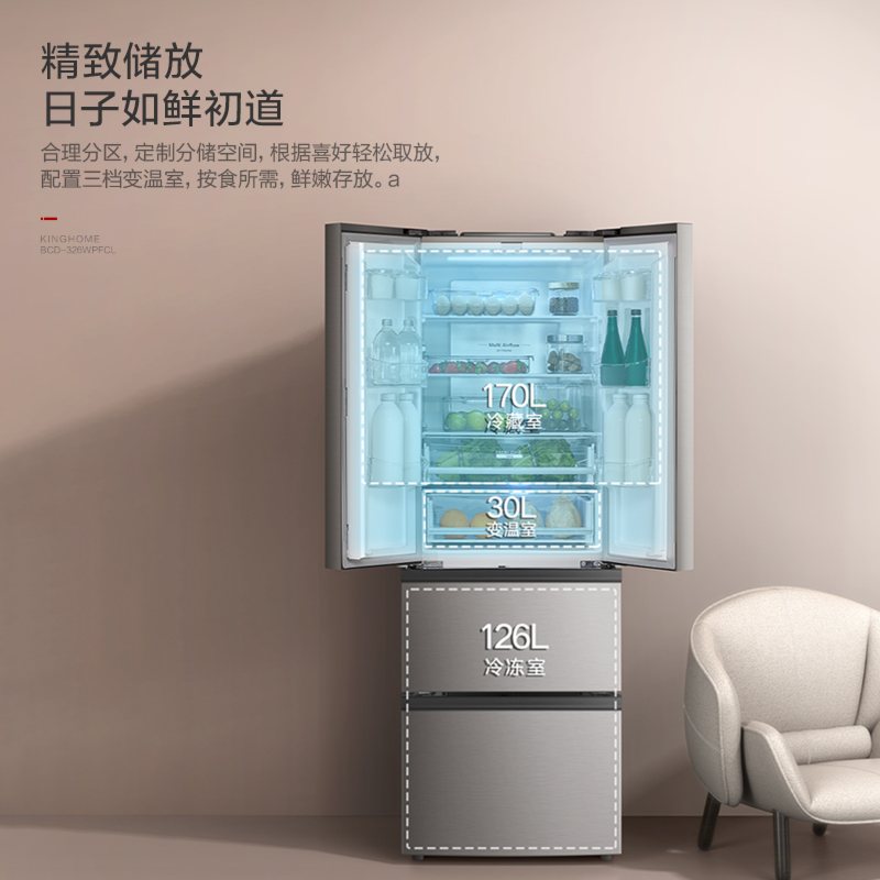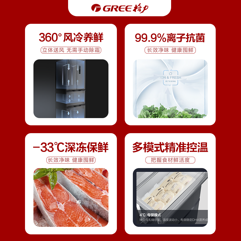 Gree Gree Jinghong 326-litre refrigerator household French four-door first-class energy efficiency double-door door