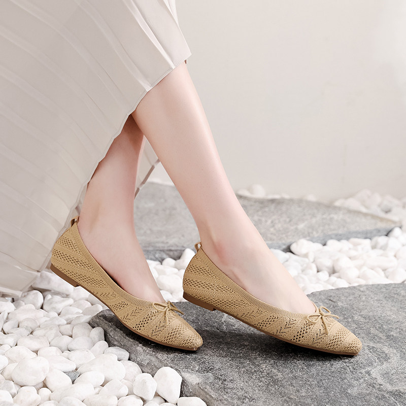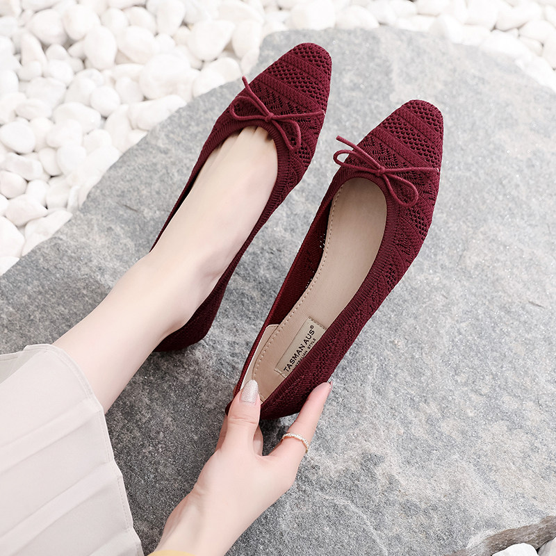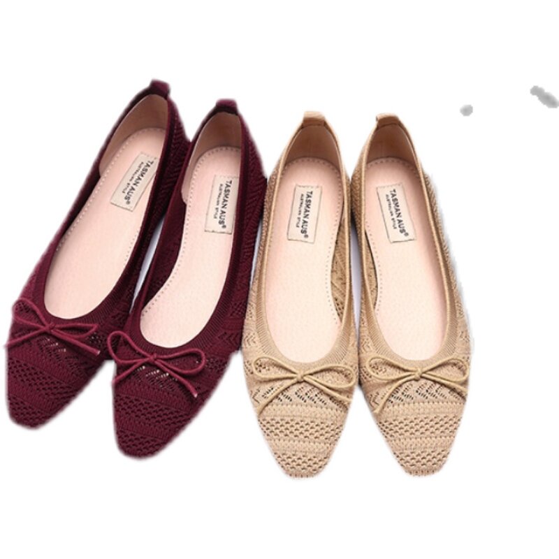 TAMANNAUS knit butterfly knots ballet shoes fashion 100 hitchhiking shoes female one foot pedal breathable single shoes