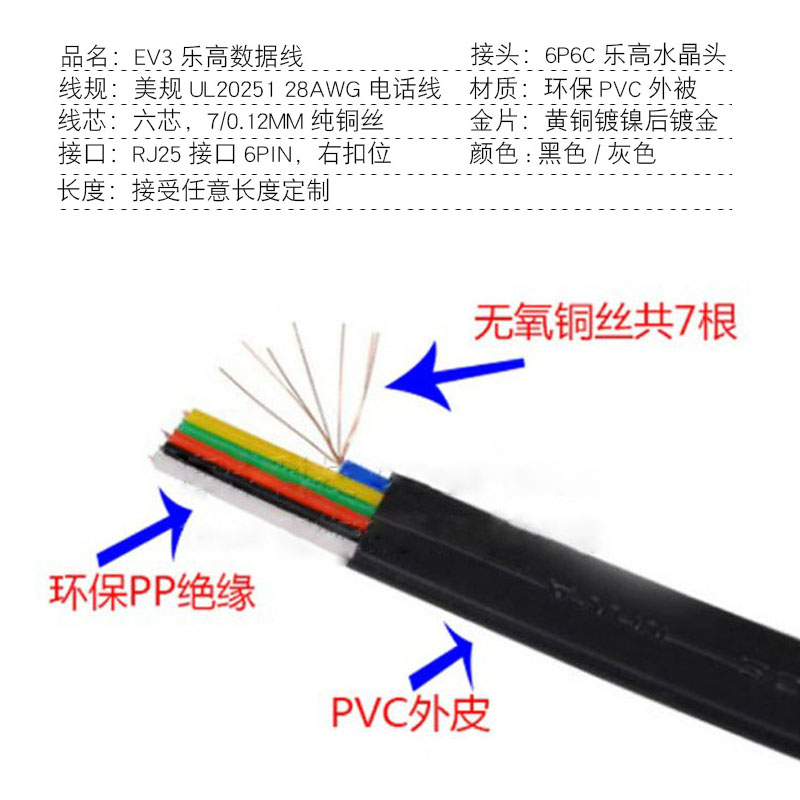 Compatible Lego NXT EV3 sensor data wire 6 core lego right buckle position crystal head motor accessories connecting wire