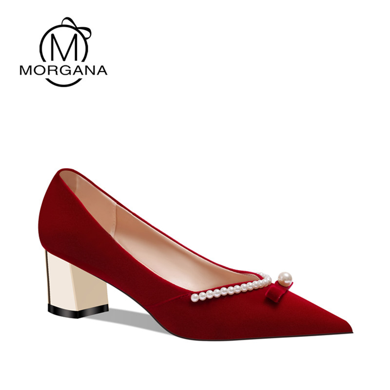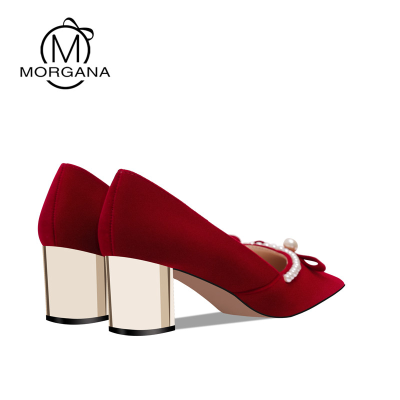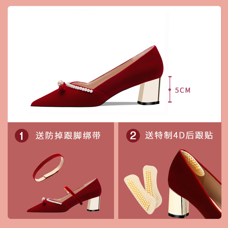 Wedding shoes in the summer of 2023 new Xiuhe wedding dress two pregnant women wear rough heels red Chinese bride shoes