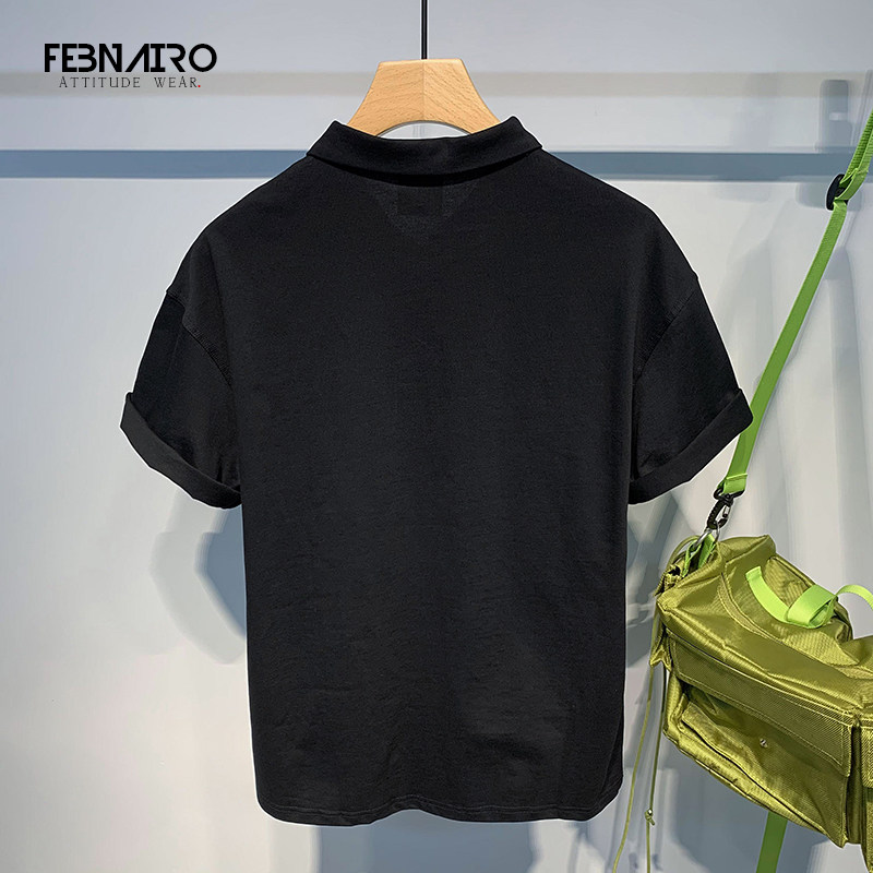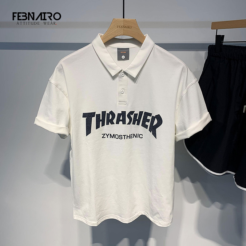 Light-cooked wind printing turtlenecks POLO shirt male American vintage salt tether short sleeve T-shirt summer loose tide cards half sleeves