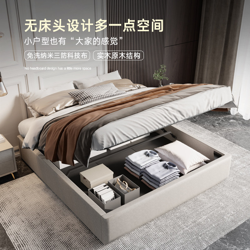 Double bed light luxury modern simple leather bed 1 51 8 meters small bedroom bed fabric no bed bed height box bed