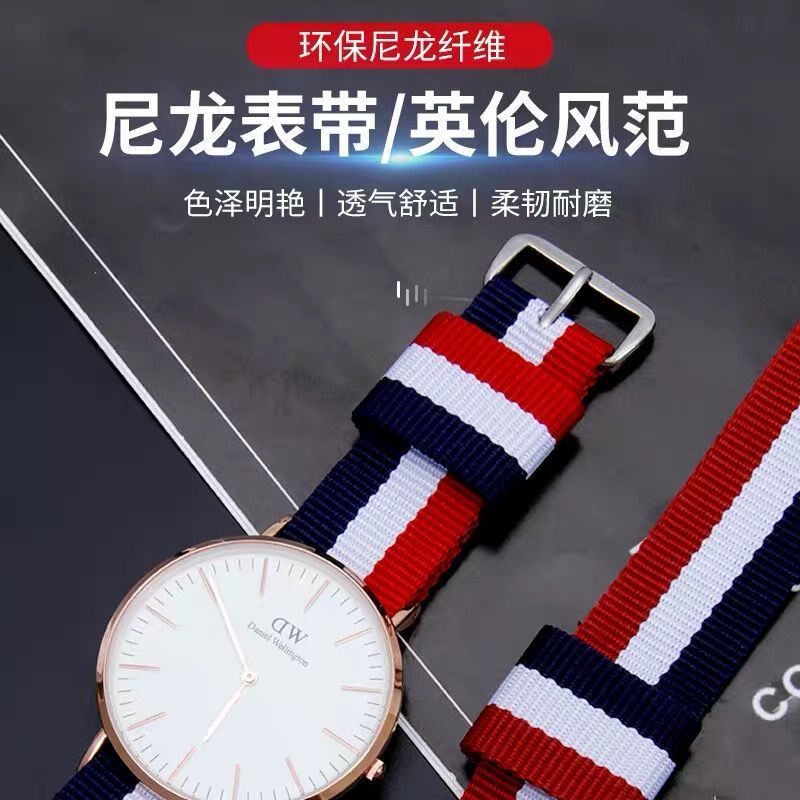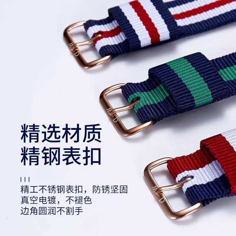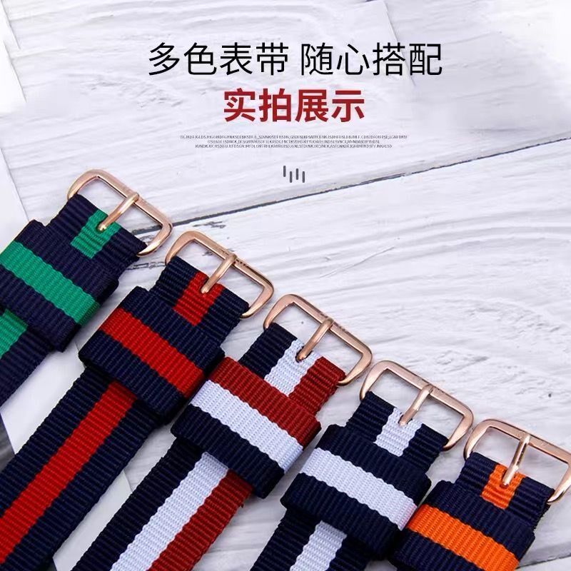 Nylon knit watch with nylon canvas knitting strap for men and women's general waterproof watch chain black red and white blue powder