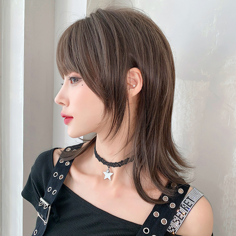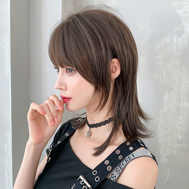 Air bangs wig short hair female straight hair age reduction simulation natural full headgear net red wolf tail mullet head fashion