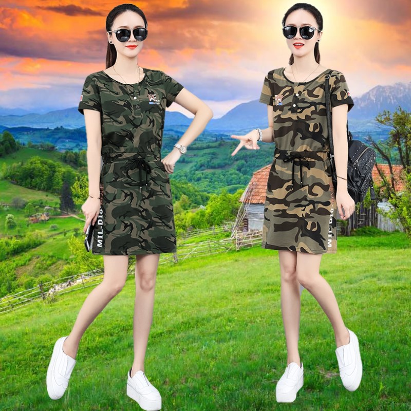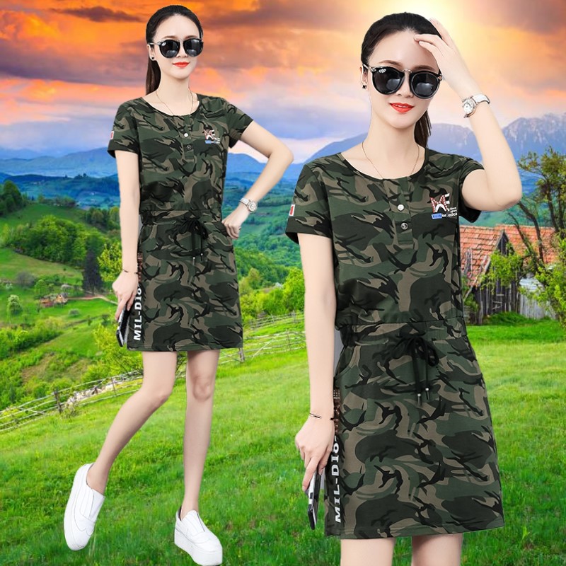 Summer camouflashed dress with dress short sleeve round collar 2022 summer dress new cashew-style Casual Skirt-Taobao