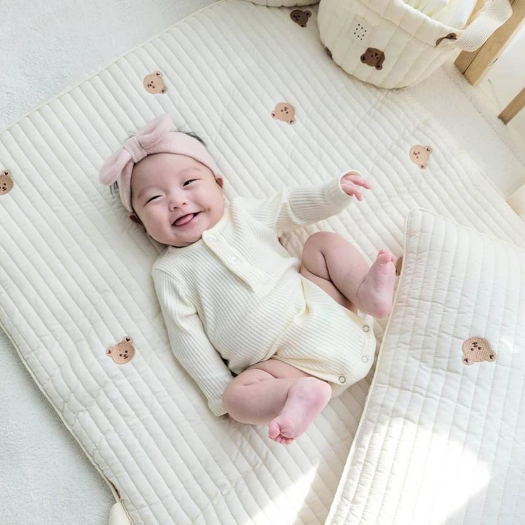 Malolotte Korea Import newborn baby embroidery 100 pure cotton breathable afternoon nap Folding Mattress Kindergarten