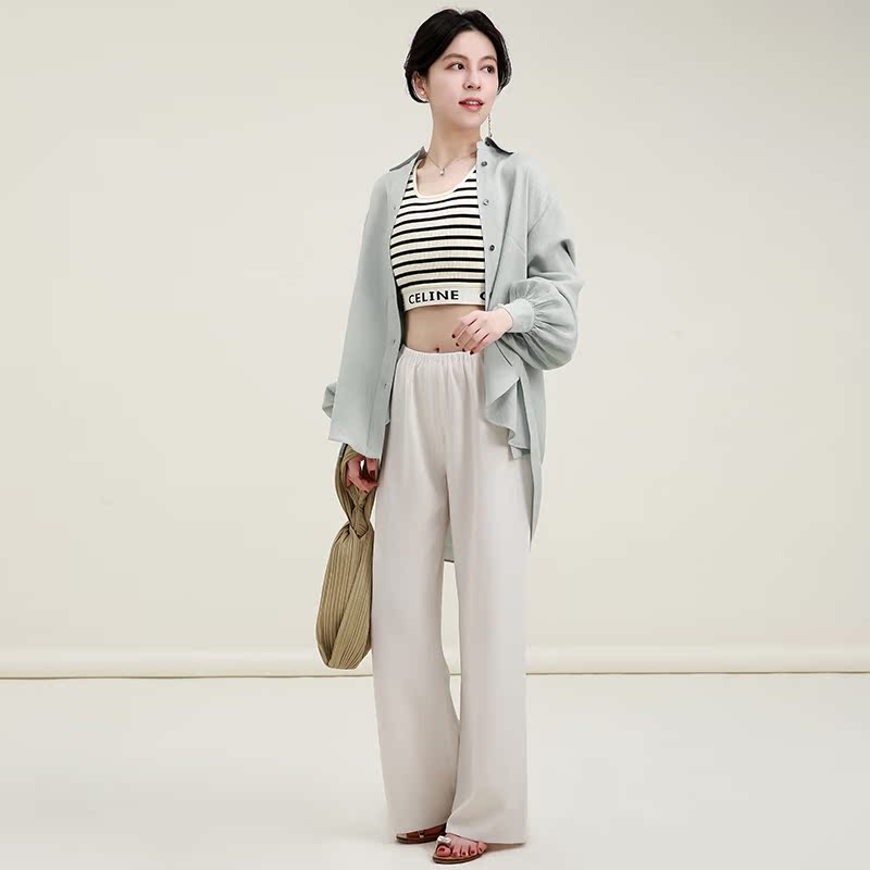 NZ Imported Triacetate Macaron Color Air Pants High Waist Anti Crease straight cylinder wide pants women casual long pants summer
