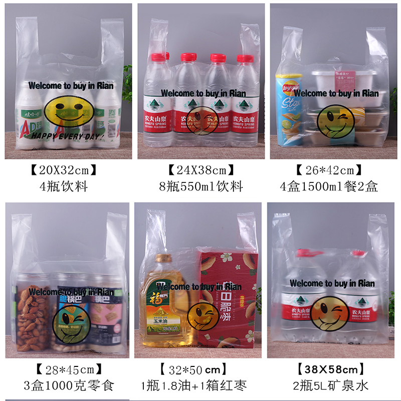 Plastic bag transparent commercial plastic bag food bag bag bag handbag wholesale shopping red smiley face convenience bag
