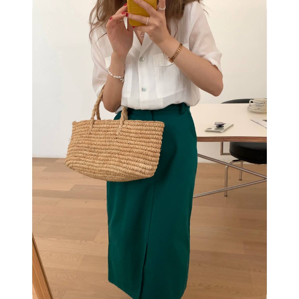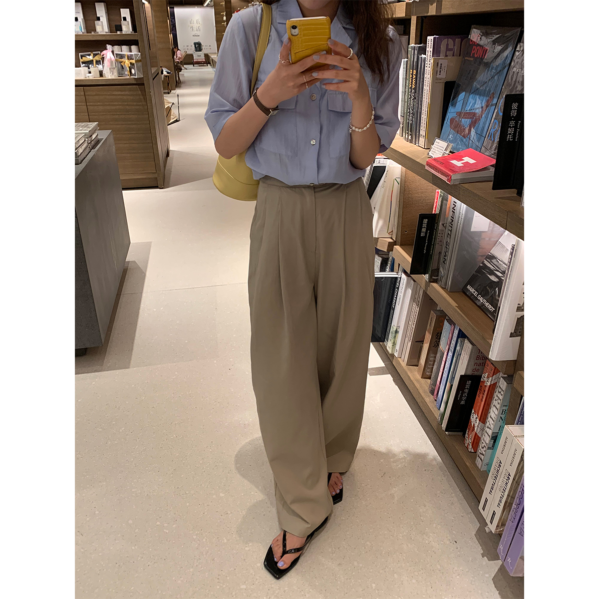 FCY Studio blue short sleeve shirt female 2021 summer new Korean version design sense niche loose V collar top