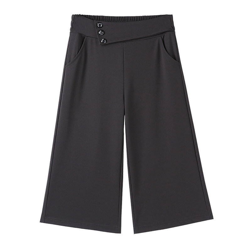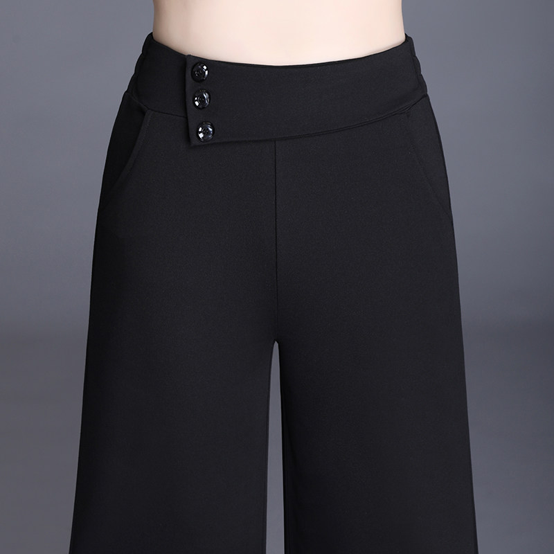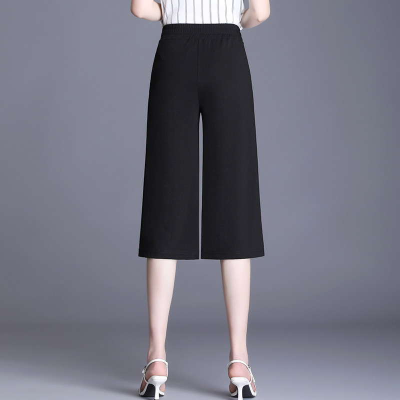 Broadleg Seven-minute Pants Woman Loose 2022 Spring thin section High waist casual over knee 50% pants 80% black straight drum pants