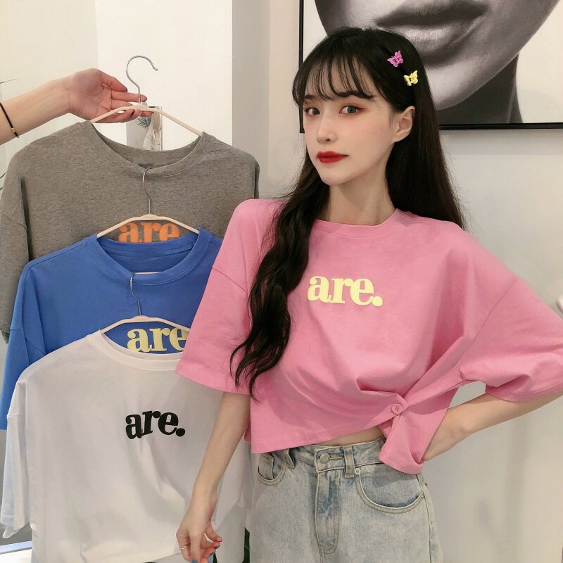 Summer Korean version 2021 new design sense careful machine short loose letter net red short-sleeved T-shirt top female ins