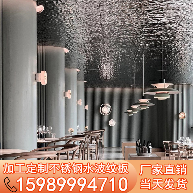 Stainless steel Water Polripple plate overhanging ceiling Ceiling Mirror Embossing Plate Hotel Wall Trim Plate Processing Customised Styling Wave Plate