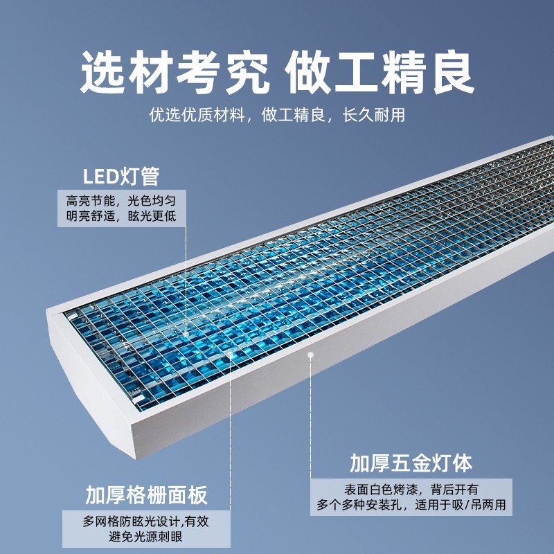 Classroom lamp special lighting t8led grille lamp double tube with cover fluorescent lamp frame school anti-glare full set direct sales