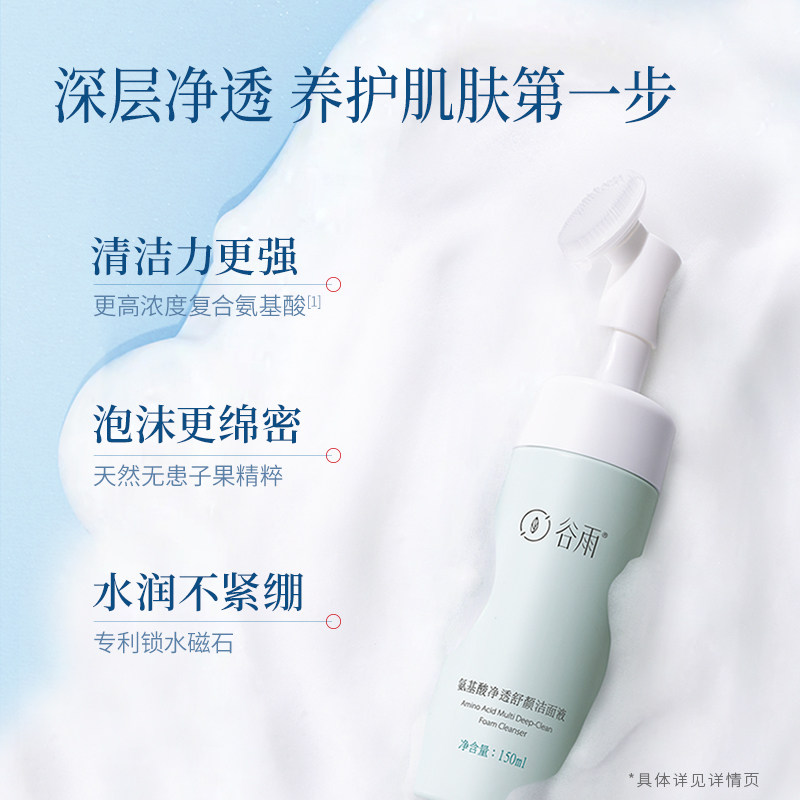 (New Products) Valley Rain Wash Face Milk Amino Acids Clean Face Oil Skin Deep Cleansing Foam Gentle Moisturizing Brushed Head Men and women