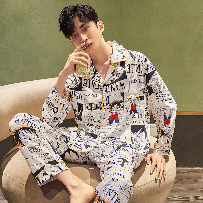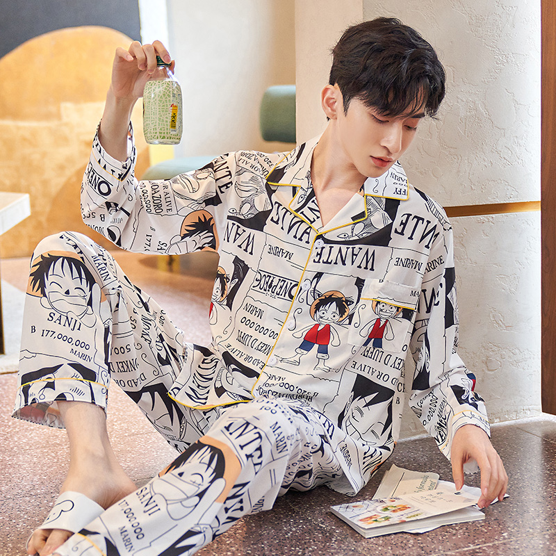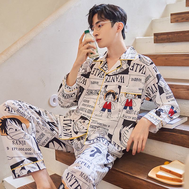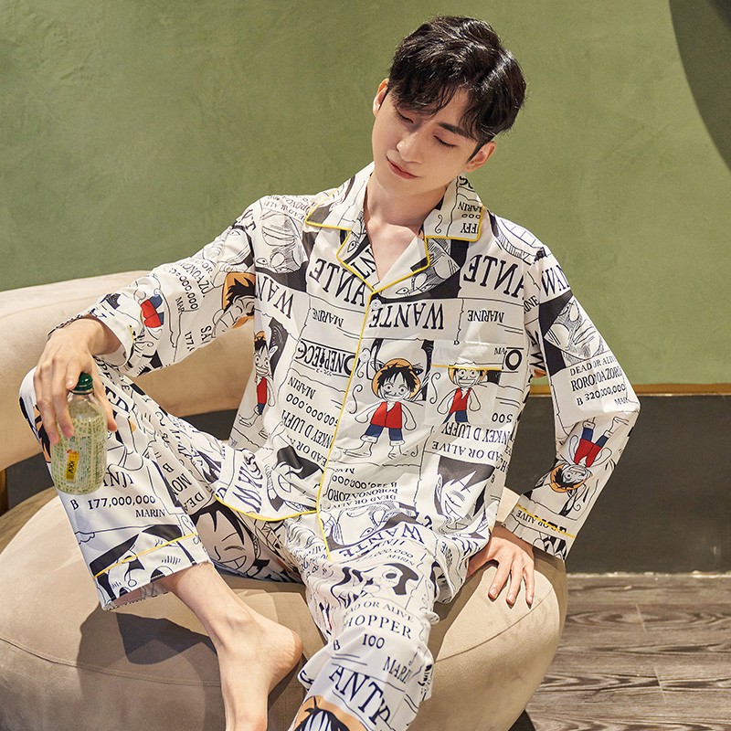 Pajamas Men's Ice Silk Spring and Autumn Long-sleeved Autumn Youth Cartoon Student Silk Summer Thin Homewear Set