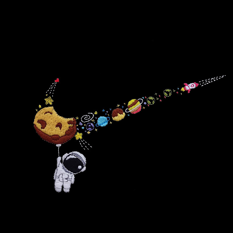 Black embroidery special short-sleeved T-shirt white embroidery special short-sleeved T-shirt small AJ diy material bag free drawing Li Ning spaceman diy material bag free drawing Stitch DIY material