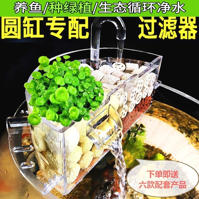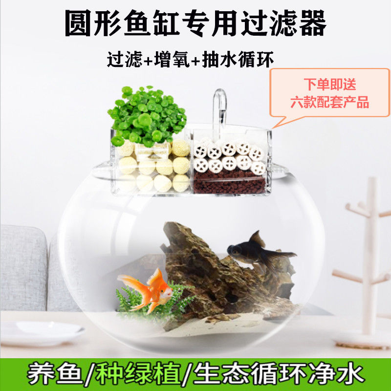 Round fish tank filter Small three-in-one upside filter box Waterfall type silent water cycle oxygenation filtration gas