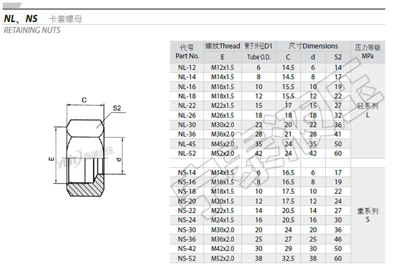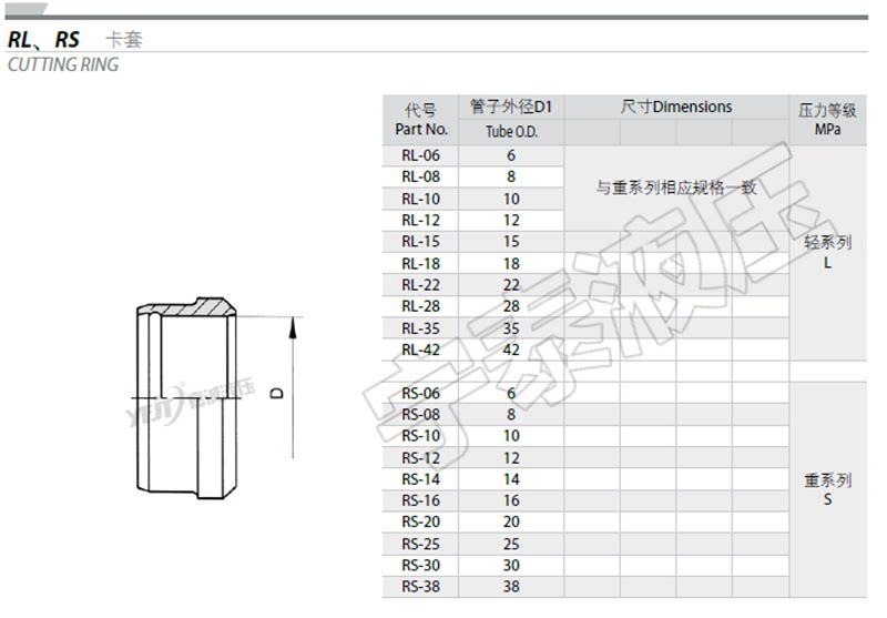 Hydraulic accessories NS RS nut core light and heavy duty NL RL high pressure tubing JS clamp sleeve cap fitting