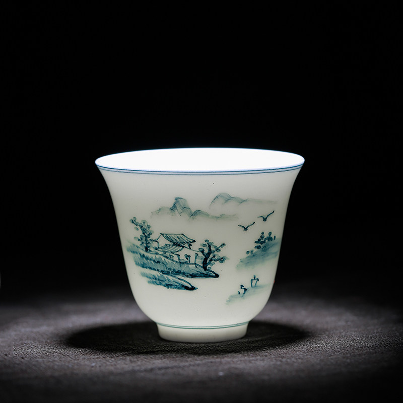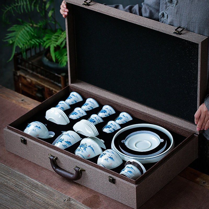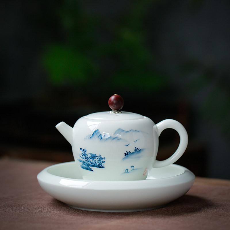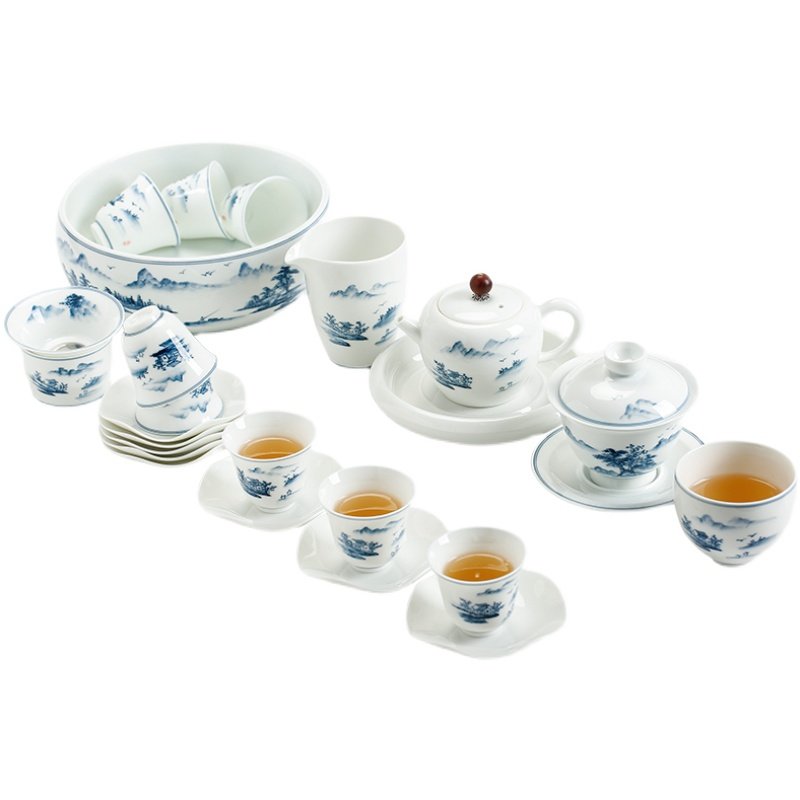 Ceramic Three-Talent Bowl Tea pot teapot tea toilet Chinese Kungfu tea toilet hand-painted blue mountain teacup household suit