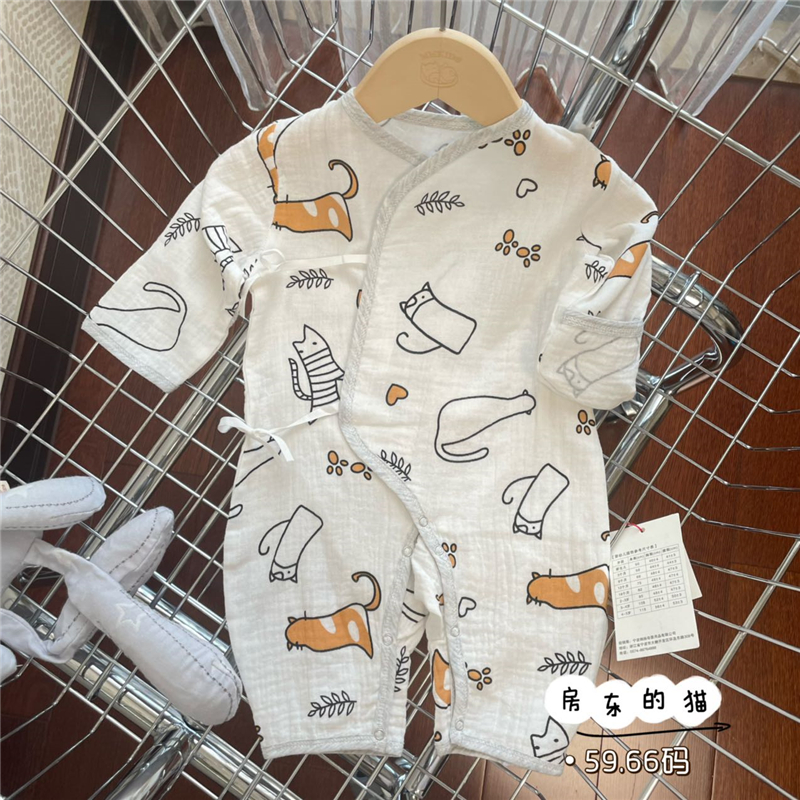 MMKIDS Magic Little Meow Infant Baby One Piece Cotton Double Layer Wrinkled Gauze Newborn Romper Spring Summer