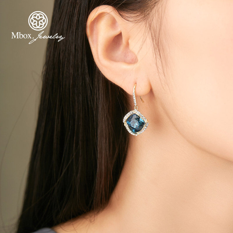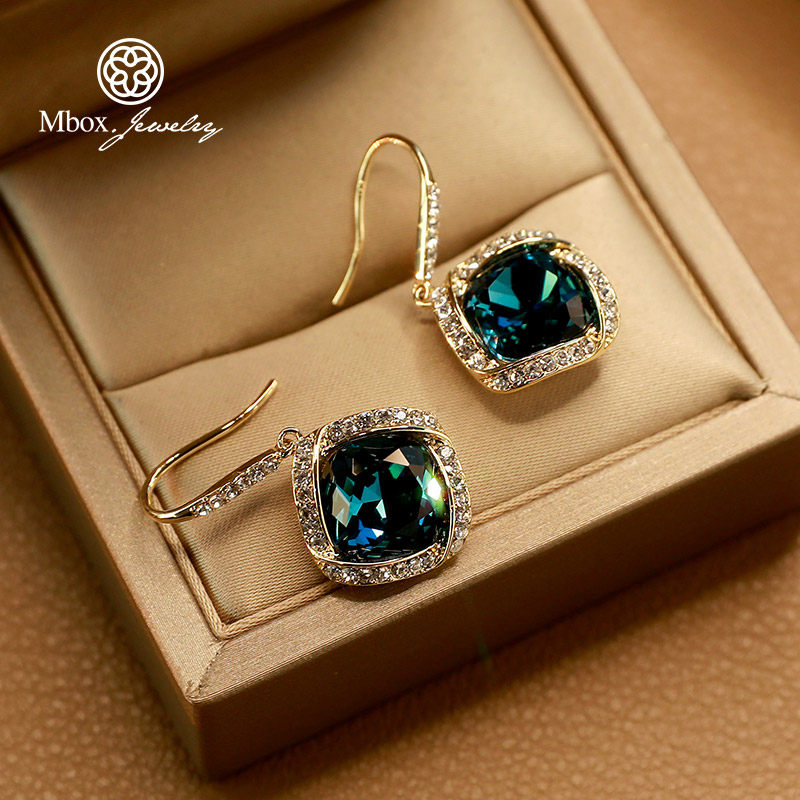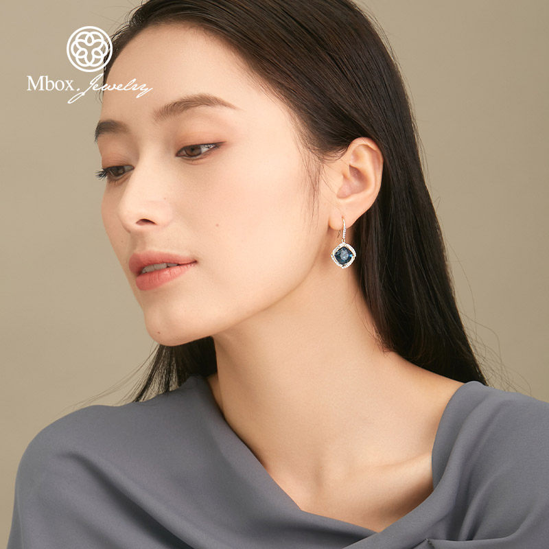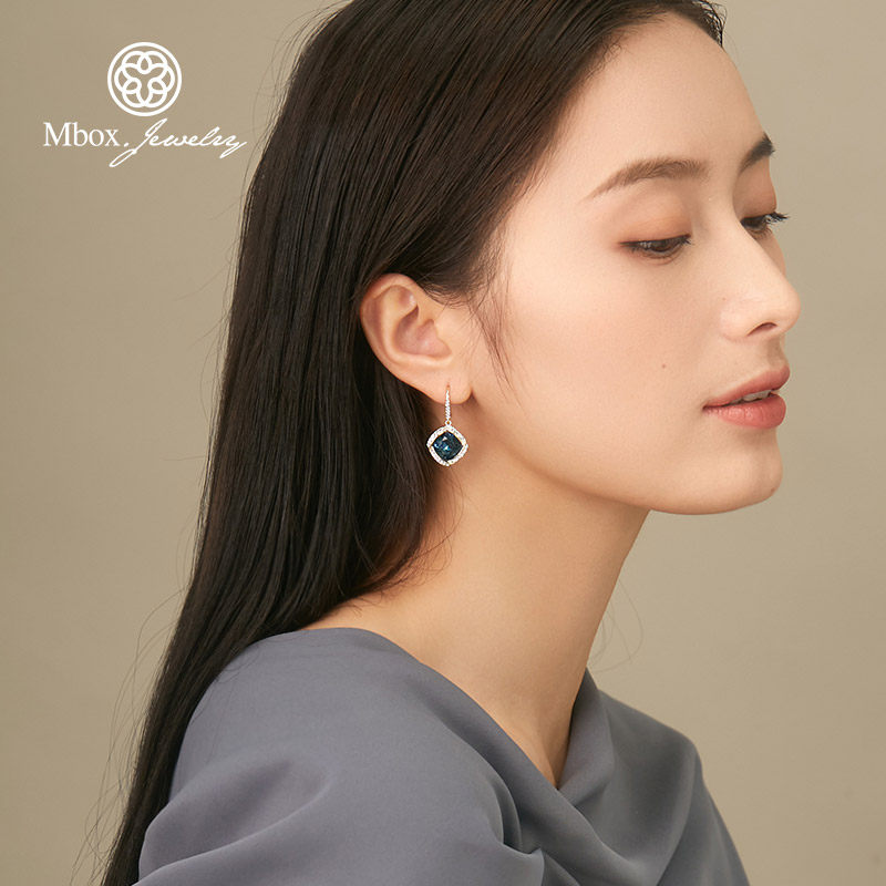 Blue crystal earrings temperament celebrity designs high - sensory ear crash 2022 new tide ear - accessory female summer
