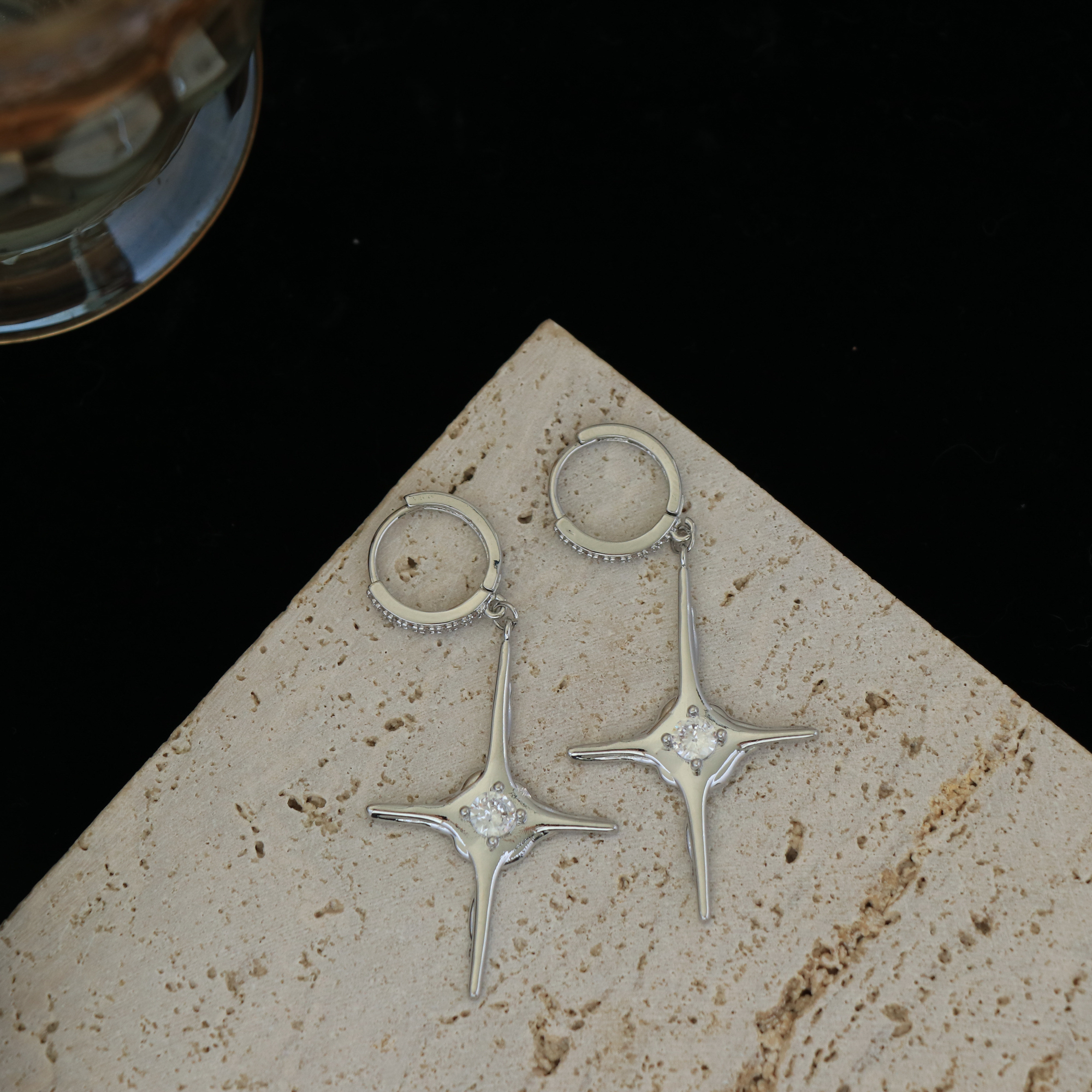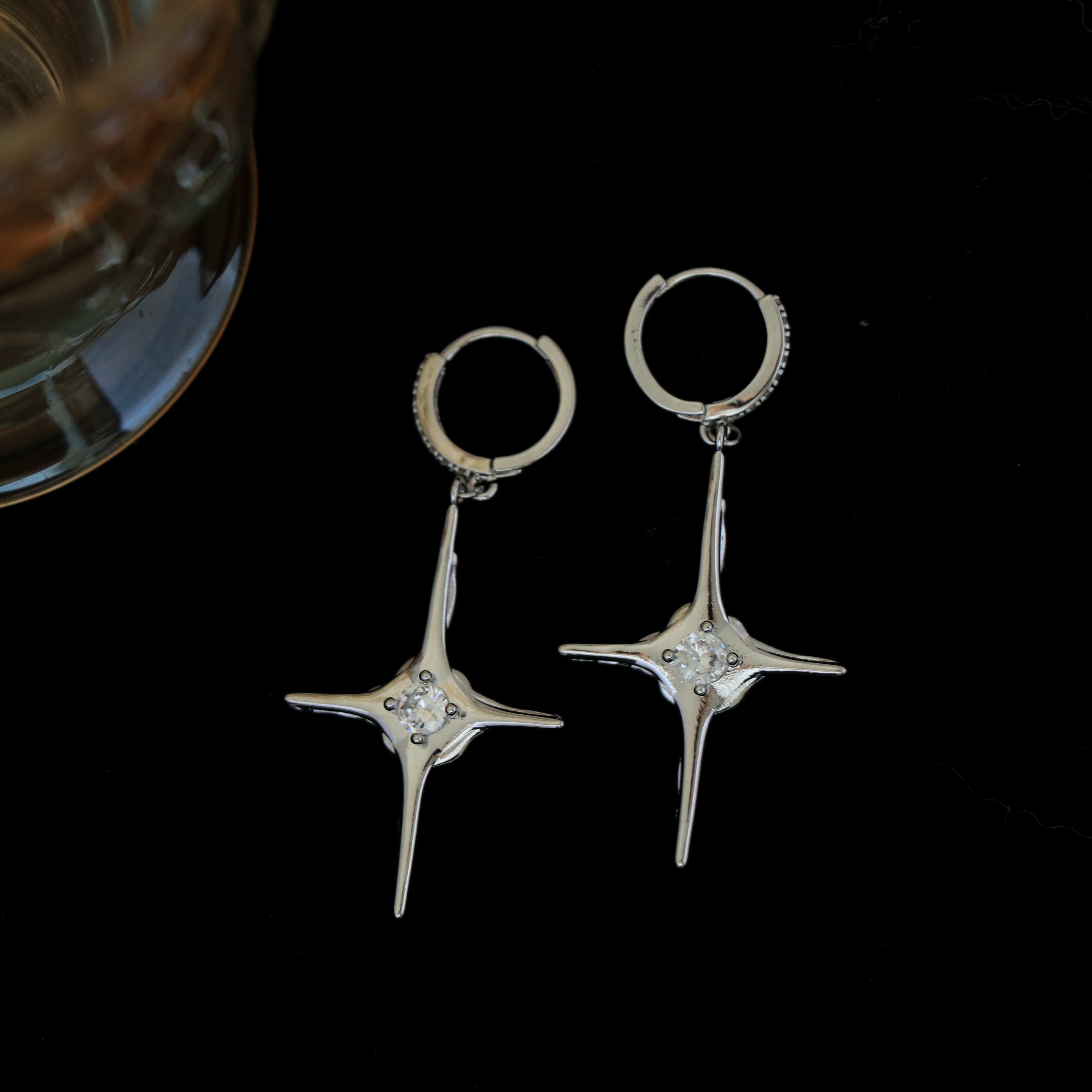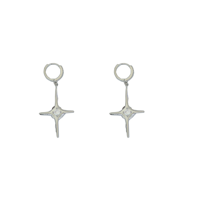 For lack of Stine S925 silver needle cross meteor earrings personality lukewarm wind ear needles sweet and hot girl Jane about earthy