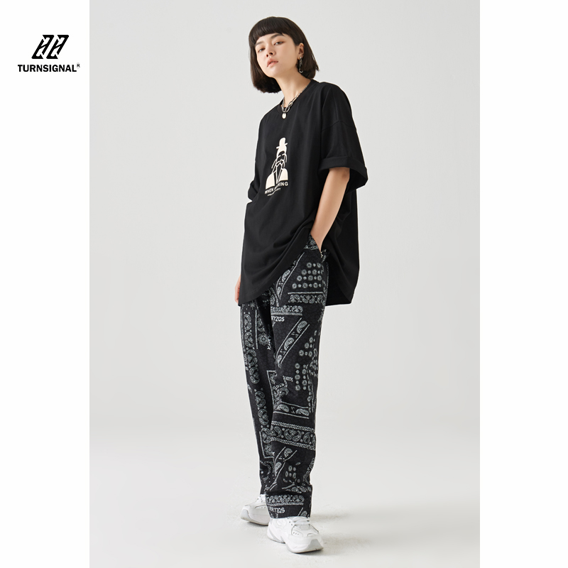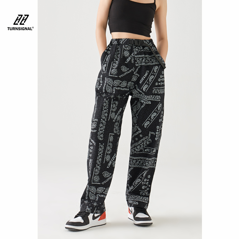 TURNSIGNAL fashion brand cashew flower pants design sense of women's niche loose wide leg casual straight thin trousers