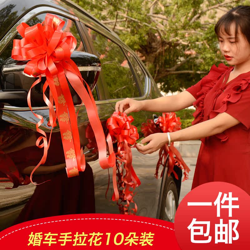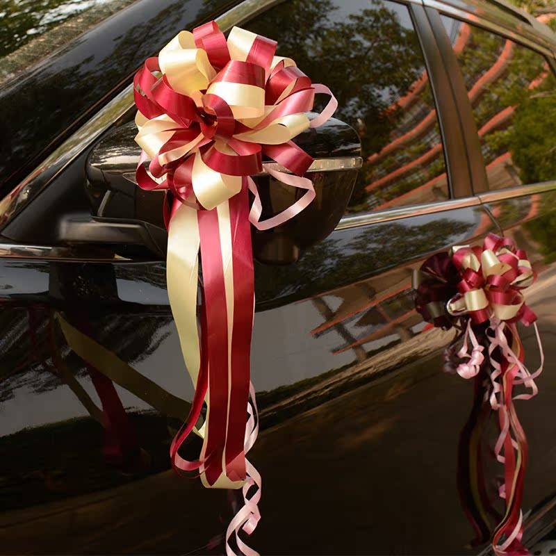 Wedding celebration hand drawn flower color with flower knot Wedding car decorative handlebar flowers