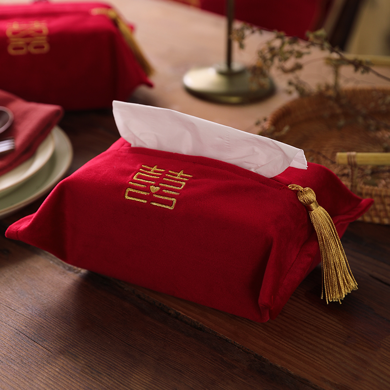 I love life Red happy word paper towel bag Chinese wedding paper towel set Home living room bedroom festive paper bag