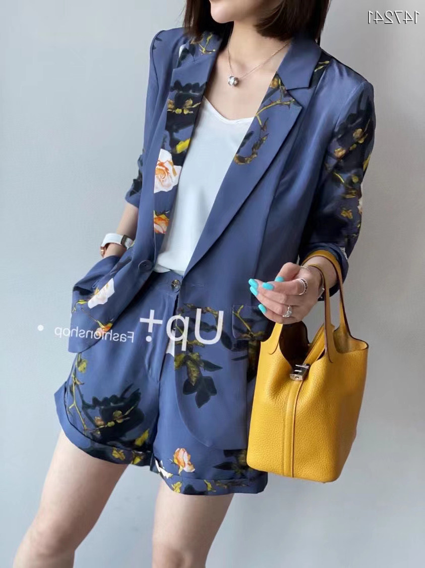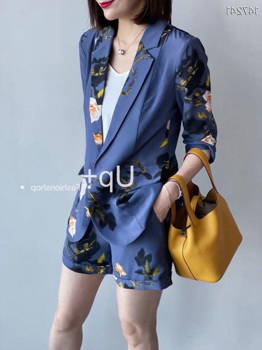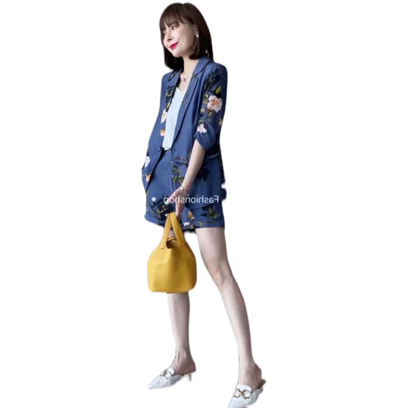 Temperament age-reducing silk small suit jacket female European goods new design niche shorts mulberry silk suit suit