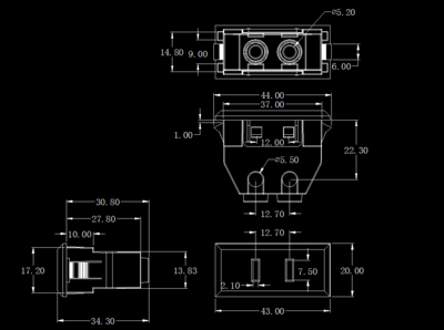 Card embedded diode diode interaction 2 core AC power socket module for diode - diode interface