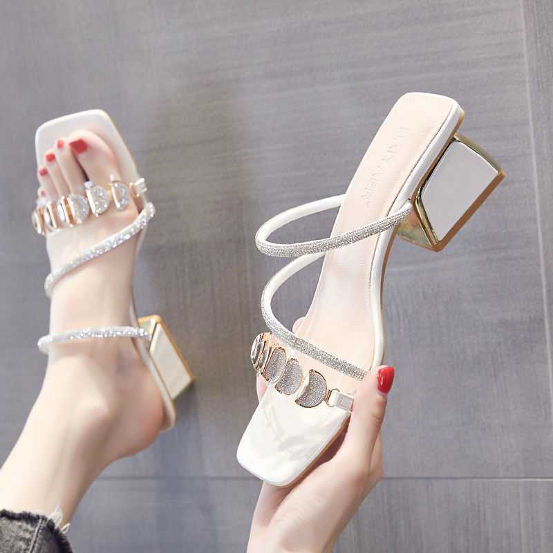 Sandals women summer fashion new square bright toes, dragged heels, leisure sandals water slippers