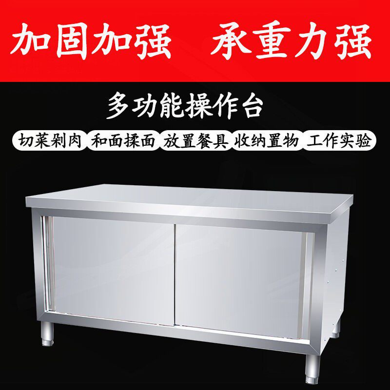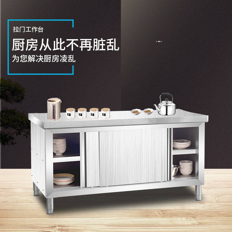 Stainless steel household sliding door workbench kitchen table load operation table cutting vegetables commercial table chopping board cabinet