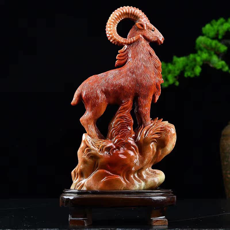 Fujian Shoushan Stone Collar Head Sheep Swing Piece Office Furnishing Handmade Engraving Natural Chite Crafts Gift Pendulum Decoration Gifts Collection