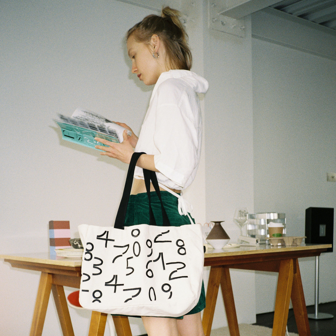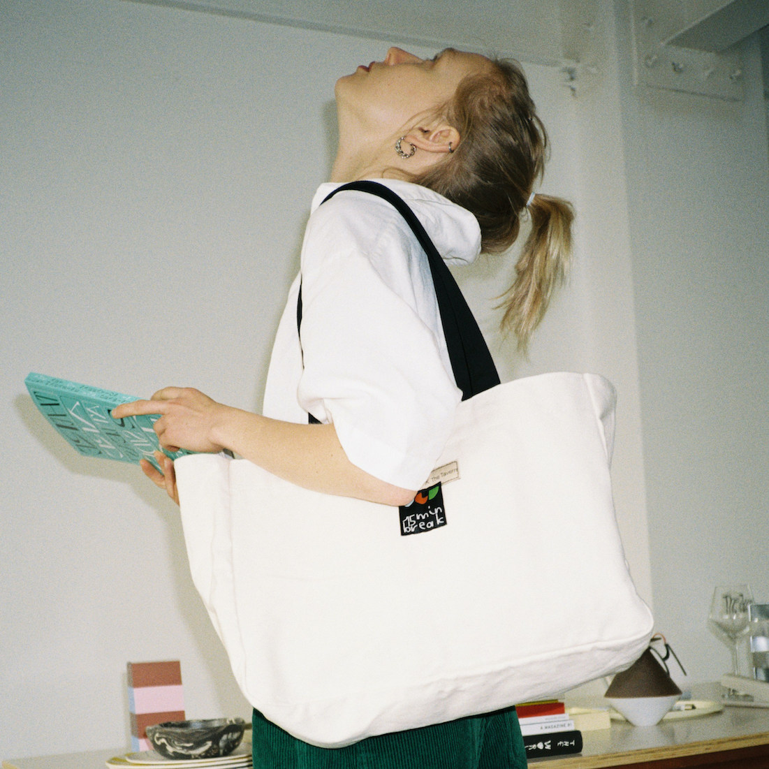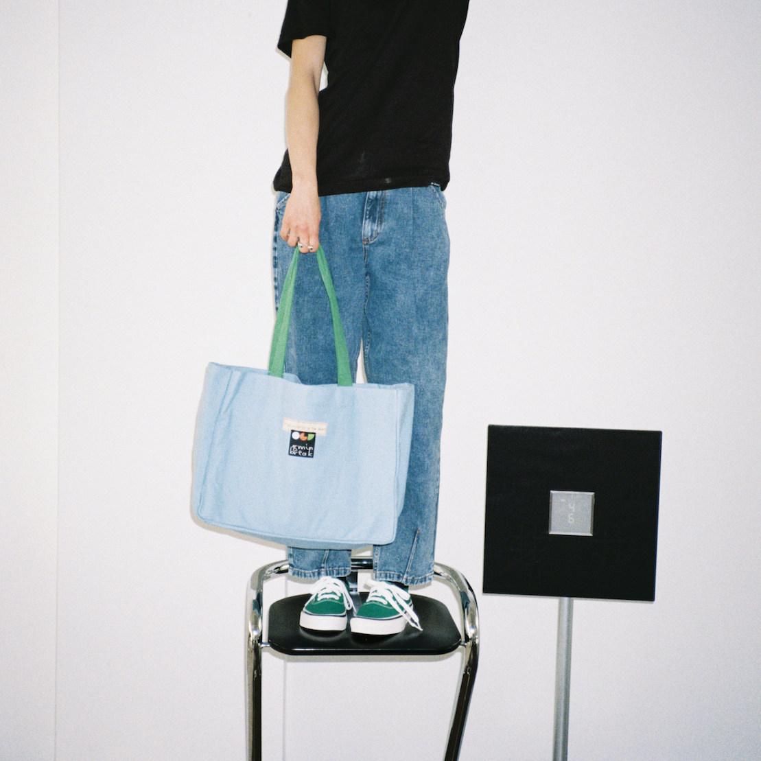 TheTavern 15-min break Embroidered Contrast Canvas Bag Break Bag 2 colors Sesame White Blueberry