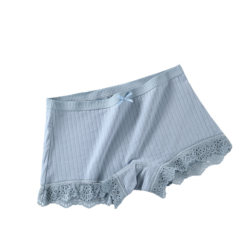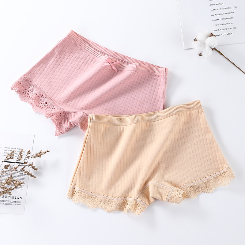 4 articles mid-waist lady's four-corner underpants no-mark teenage girl summer four-corner pants 100% full cotton crotch anti-walking light lace white