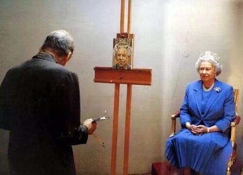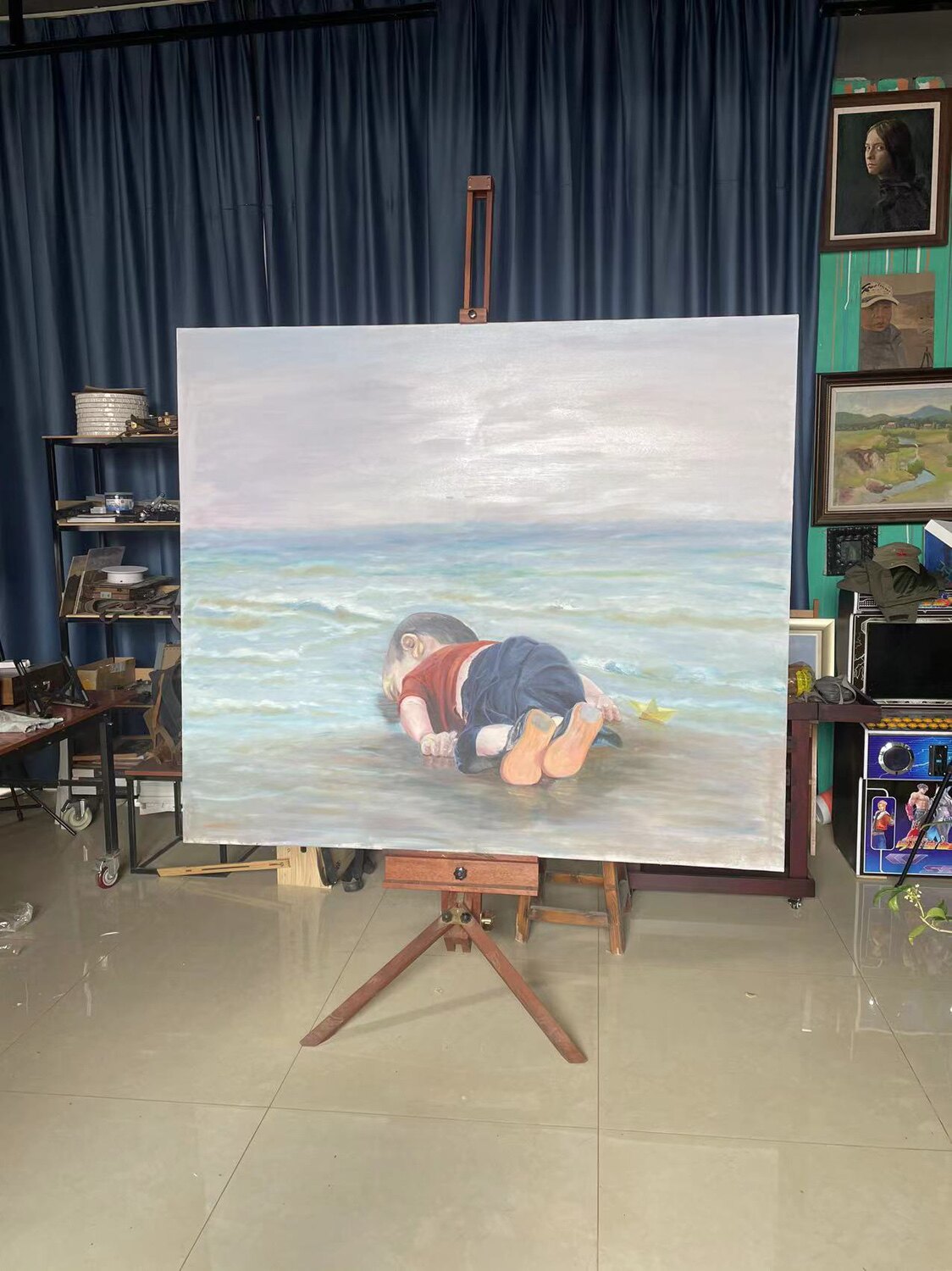 Lucian Freud with the same wooden adjustable easel oil painting children's students folding multi-functional bracket