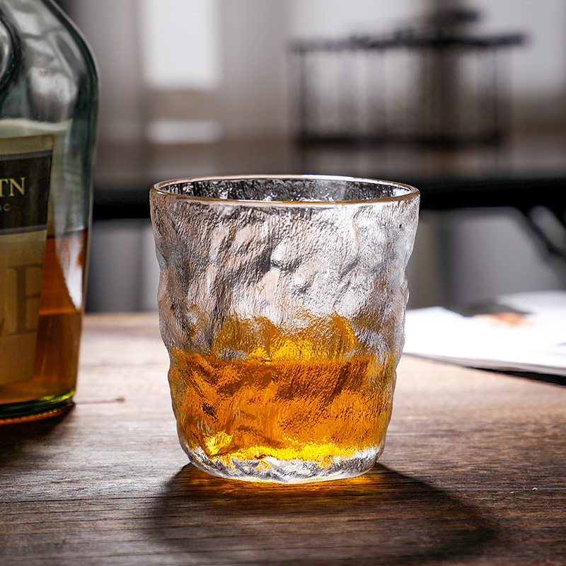 Glass Japanese glass hammer teacup daily tree mark simple transparent tea beer cup iceberg cup