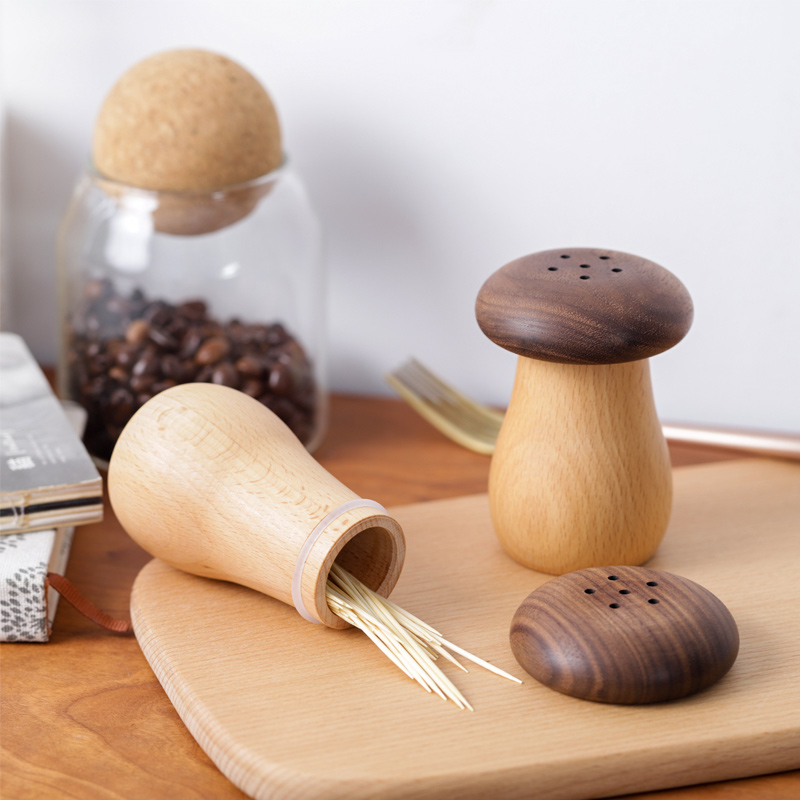 Japanese mushroom toothpick tube Black walnut wood solid wood toothpick box Household personality creative fashion cartoon toothpick jar
