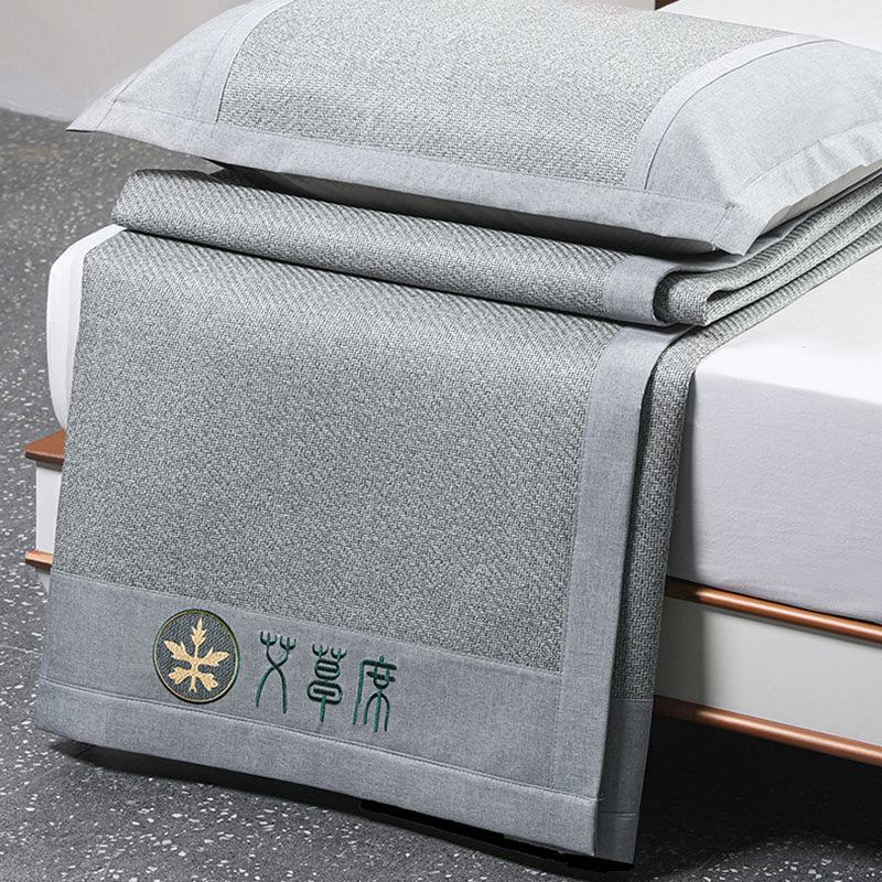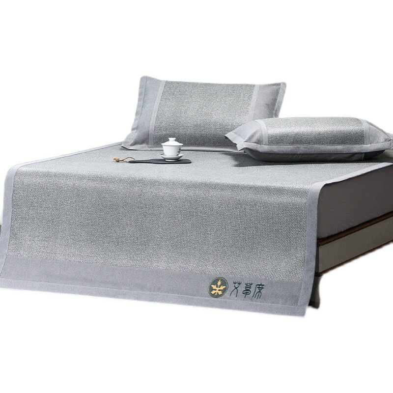 Wormwood mat thickened rattan mat home ice silk mat three-piece set 1 5m summer mat 1 8m bed foldable 2m