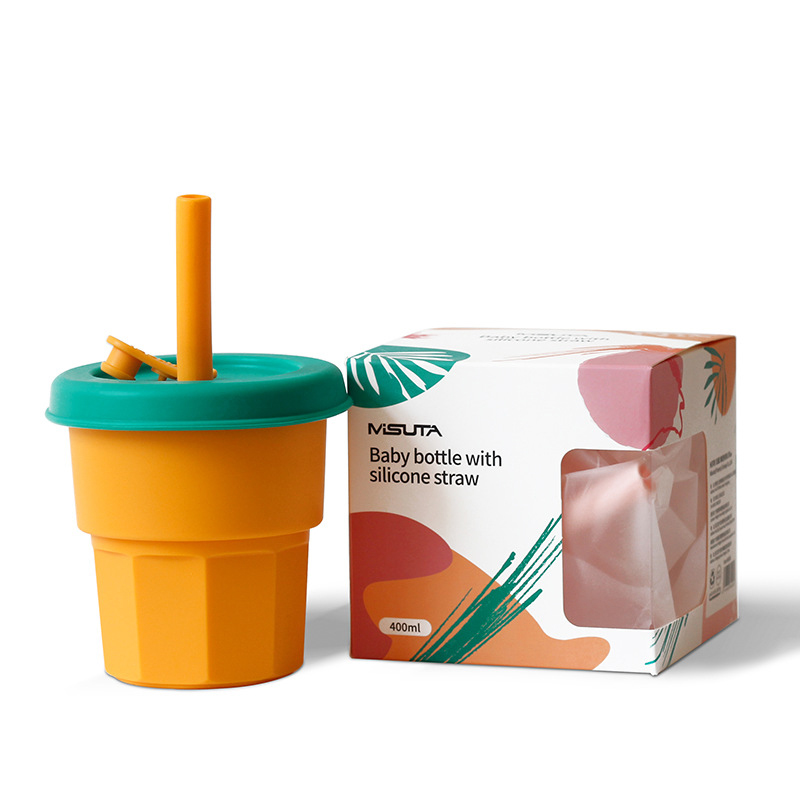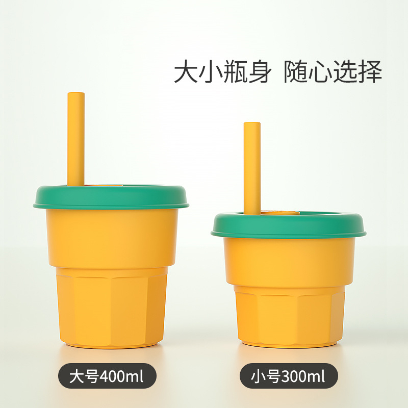 Children's silicone gel water glass anti-fall full soft straw cup girl high face value Summer large capacity baby to attend portable cup