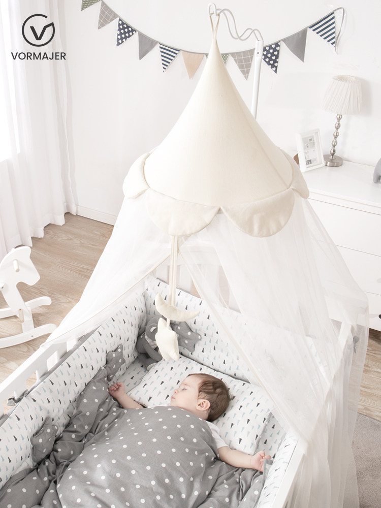 Crib mosquito net with bracket rod full cover universal newborn baby anti-mosquito cover children's foldable lift yarn