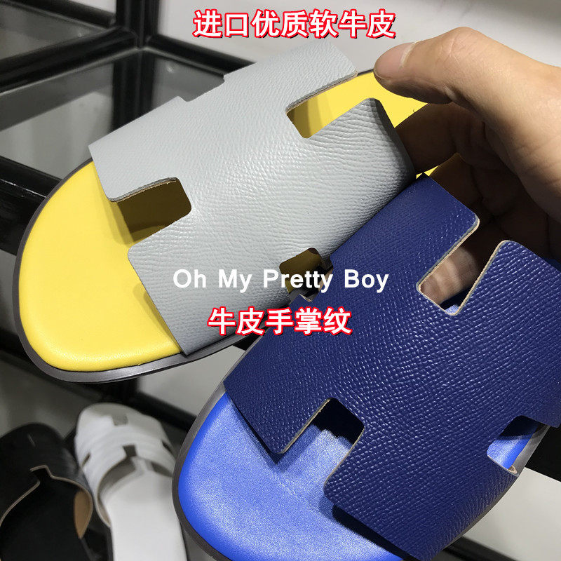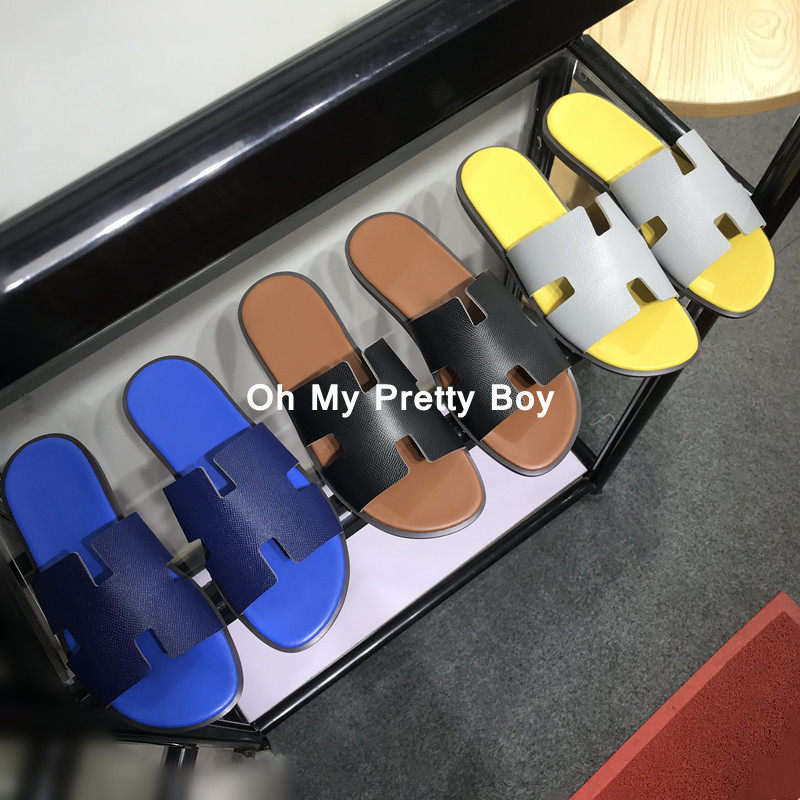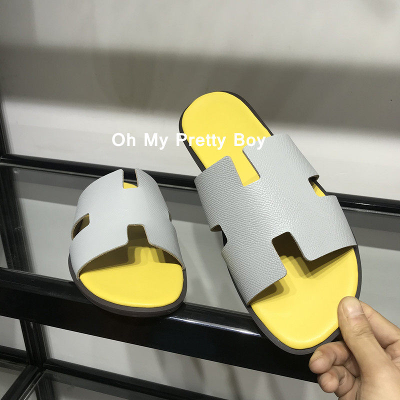Slipper men's summer wear European station leather Beach Yellow large size outdoor men's slippers color